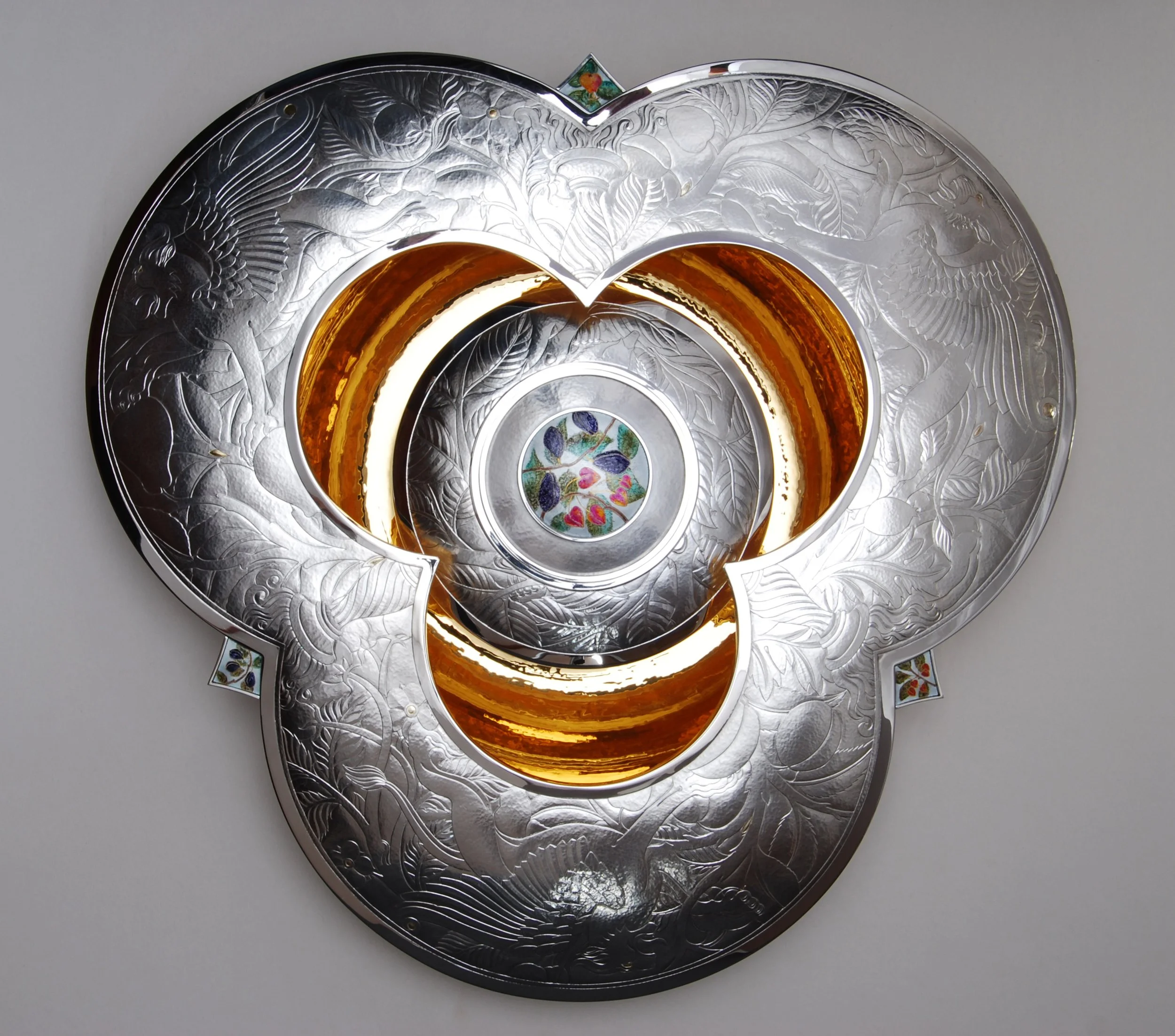 A pair of dishes and bowls for No 10 Downing Street Detail of dish with chased horse heads and diamonds for De Beers King George VI Queen Elizabeth Stakes at Ascot